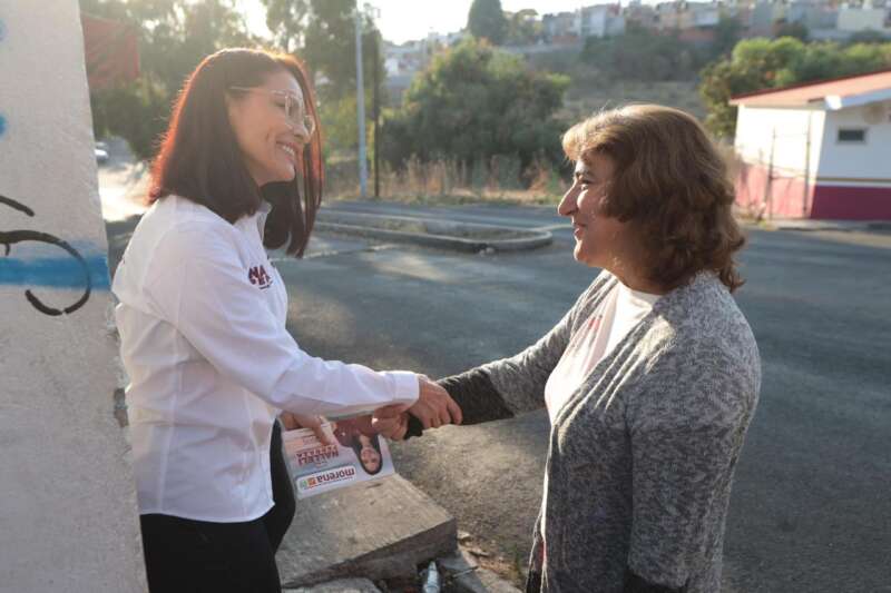 La candidata morenista de la Coalición Sigamos Haciendo Historia dijo sentirse muy contenta y emocionada por las muestras de apoyo y respaldo que le han estado brindando las personas a las que les toca su puerta para saludarlos y escuchar su sentir.
