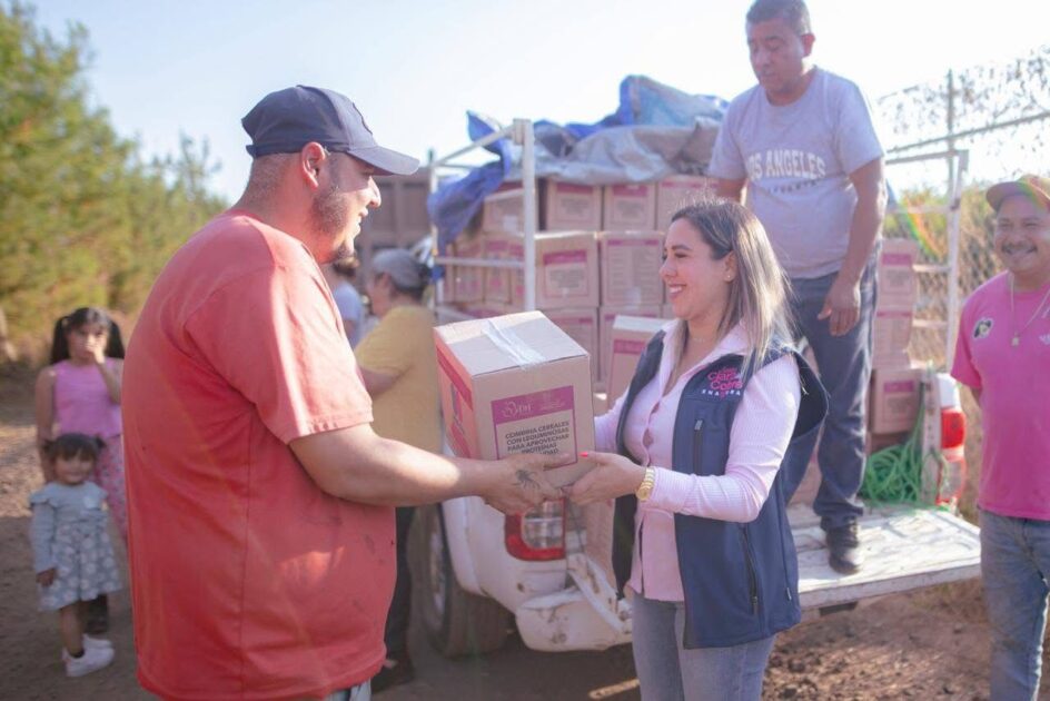 Durante la jornada, y acompañada por la Presidenta Honoraria del DIF Municipal, Angélica Mendoza, se realizó la entrega de balastre para mejorar caminos y accesos, así como despensas que representan un respaldo directo para la economía de los hogares de estas localidades. Estas acciones buscan fortalecer las condiciones de movilidad y bienestar de las comunidades.