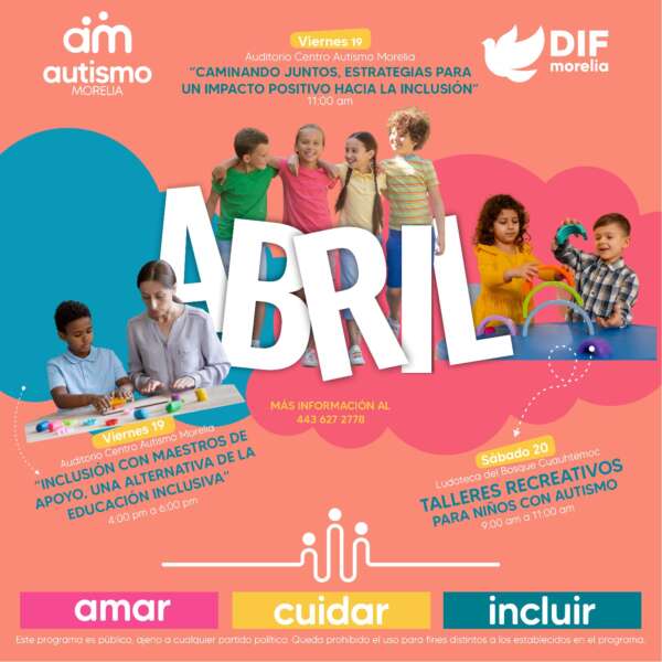 Morelia, Michoacán, a 16 de abril de 2024.- El DIF Morelia invita a familias, educadores, profesionales al cuidado de personas con autismo y a la comunidad en general, a participar este viernes 19 y sábado 20 de abril en una serie de actividades educativas y recreativas diseñadas para fomentar la inclusión y el apoyo a las familias con miembros en el Espectro Autista (TEA).