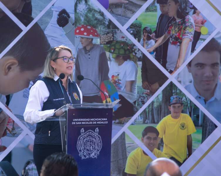 Morelia, Michoacán, a 19 de abril de 2024.- Al inaugurar el Tianguis de la Ciencia que organiza la Universidad Michoacana de San Nicolás de Hidalgo (UMSNH), la rectora Yarabí Ávila González, señaló que el apoyo a la ciencia y la tecnología seguirá creciendo en la institución.