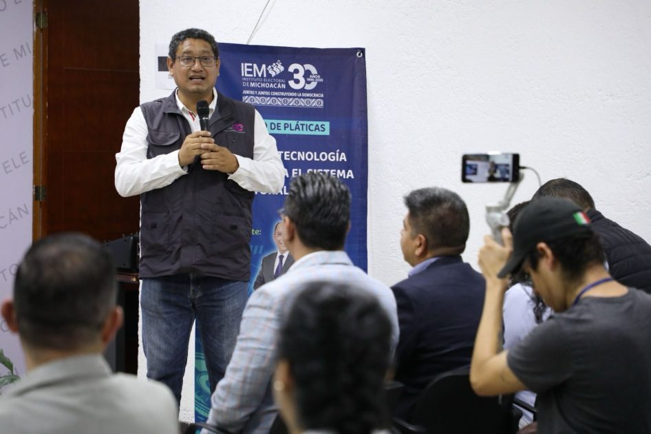 *Morelia, Michoacán, 22 de septiembre de 2025.- Con el objetivo de reflexionar sobre el impacto de la tecnología en los sistemas electoral y legal, así como analizar sus retos y oportunidades, el Instituto Electoral de Michoacán (IEM) inauguró el ciclo de pláticas “Cómo la tecnología transforma el sistema electoral y legal”, a cargo del Lic. Otilio Esteban Hernández Pérez, especialista en derecho y tecnologías aplicadas.