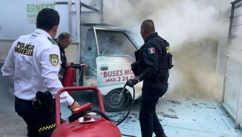Morelia Michoacán a 23 de abril de 2024.- Policía Morelia y la Coordinación Municipal de Protección Civil y Bomberos, atienden un incendio registrado en un vehículo, en el cruce de Ventura Puente y Boulevard García de León.