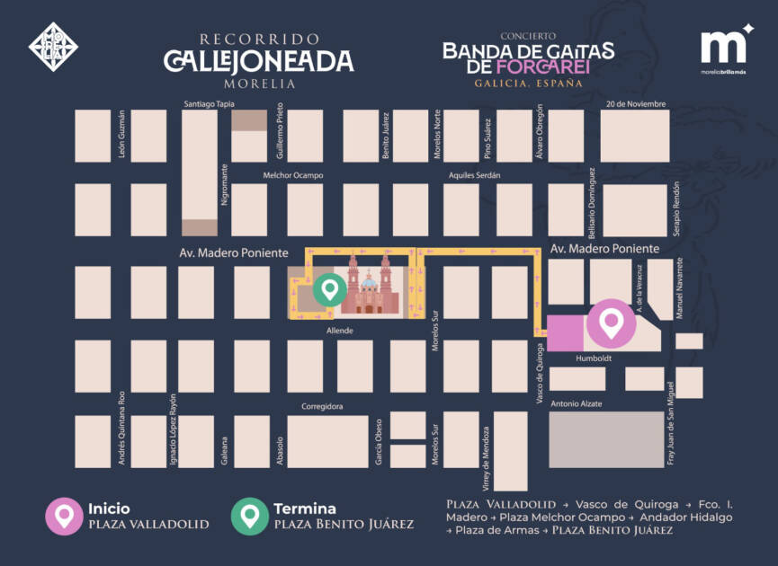 La callejoneada estará acompañada por el talento internacional de la Banda de Gaitas de Forcarei, proveniente de Galicia, España, quienes llenarán de ritmo y tradición cada rincón del trayecto, generando una experiencia cultural enriquecedora tanto para locales como turistas. Esta agrupación es reconocida por preservar y difundir la tradición musical gallega a través de presentaciones que combinan identidad, energÃa y un espectáculo sonoro que ha llevado su música a escenarios nacionales e internacionales. Su presencia en Morelia representa una oportunidad única para disfrutar de una expresión artÃstica de gran prestigio, que llenará de vida y tradición las calles del Centro Histórico