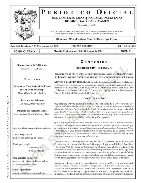 *Morelia, Michoacán, 19 de diciembre de 2025.-* El secretario de Gobierno, Raúl Zepeda Villaseñor, informó la publicación en el Periódico Oficial del Estado del decreto que reforma el Reglamento de la Ley de Movilidad y Seguridad Vial y elimina las multas e infracciones económicas de tránsito en Michoacán.