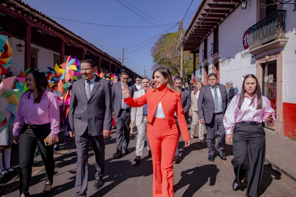 _Salvador Escalante, Michoacán a 22 de marzo de 2026.- En el marco del 220 aniversario del natalicio de Benito Juárez, el Gobierno Municipal de Salvador Escalante, encabezado por la presidenta municipal, llevó a cabo un acto cívico conmemorativo, seguido de un colorido desfile para celebrar la llegada de la primavera, en el que participaron instituciones educativas del municipio.