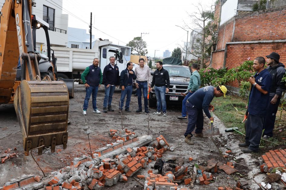 *Morelia, Michoacán; 27 de mayo de 2025.- El Gobierno de Alfonso Martínez Alcázar, mantiene una jornada permanente de limpieza y prevención en ríos y drenes de la ciudad. En la calle Ocolusen, al Oriente de la capital, se entrevistó con vecinos que se vieron afectados por la lluvia vespertina del lunes. En la zona, el agua reblandeció la tierra y provocó la caída de una barda que impactó a 2 vehículos, afortunadamente las unidades estaban solas y no hubo lesionados.
